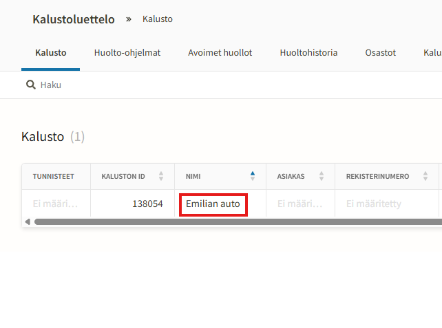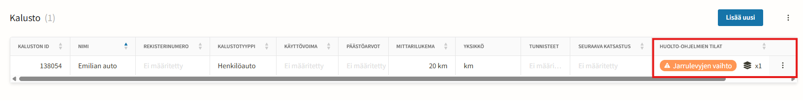 Luodaksesi kalustolle huolto-ohjelman, tai lisätäksesi kalustoja olemassa oleville huolto-ohjelmille siirry kalustoluettelolla huolto-ohjelmat -välilehdelle.